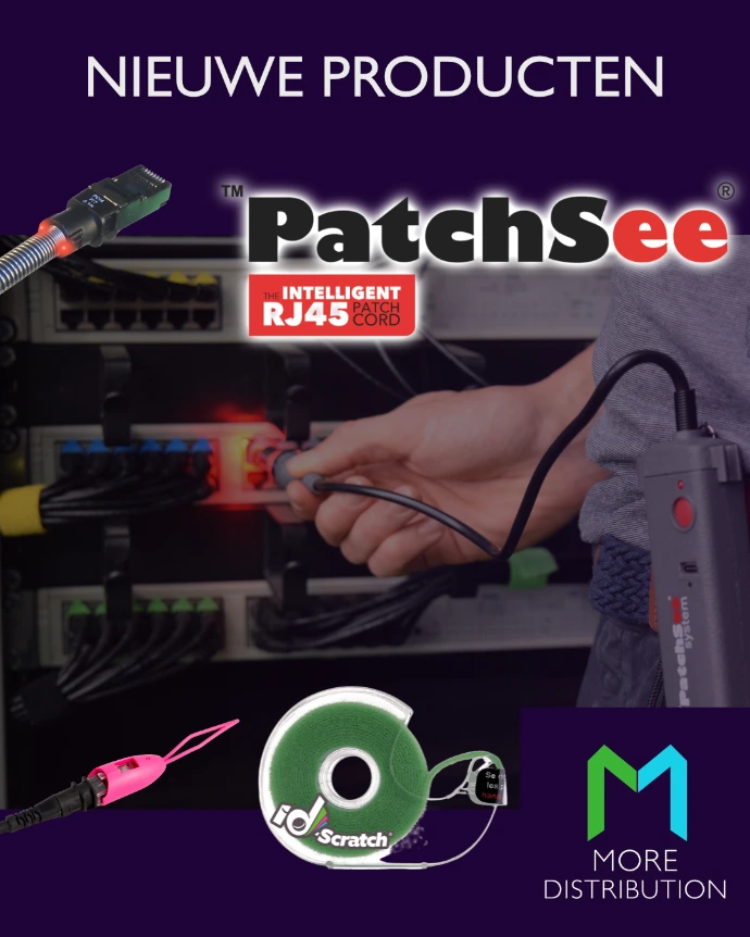 PatchSee biedt een complete set oplossingen voor RJ45-installaties die sneller, netter en betrouwbaarder moeten worden aangelegd en beheerd. Naast de herkenbare PatchSee patch cords met optische tracering en PatchLight voor snelle kabelidentificatie, omvat het assortiment ook praktische tools voor dagelijks installatiewerk: ID-Scratch voor bundelen en labelen, PlugCap voor bescherming van connectoren tijdens trekken en leggen, en WallPatch voor een nette RJ45-aansluiting aan de werkplek. Samen verkleinen deze oplossingen de kans op fouten, versnellen ze service en maken ze patchvelden en bekabeling beter beheersbaar.